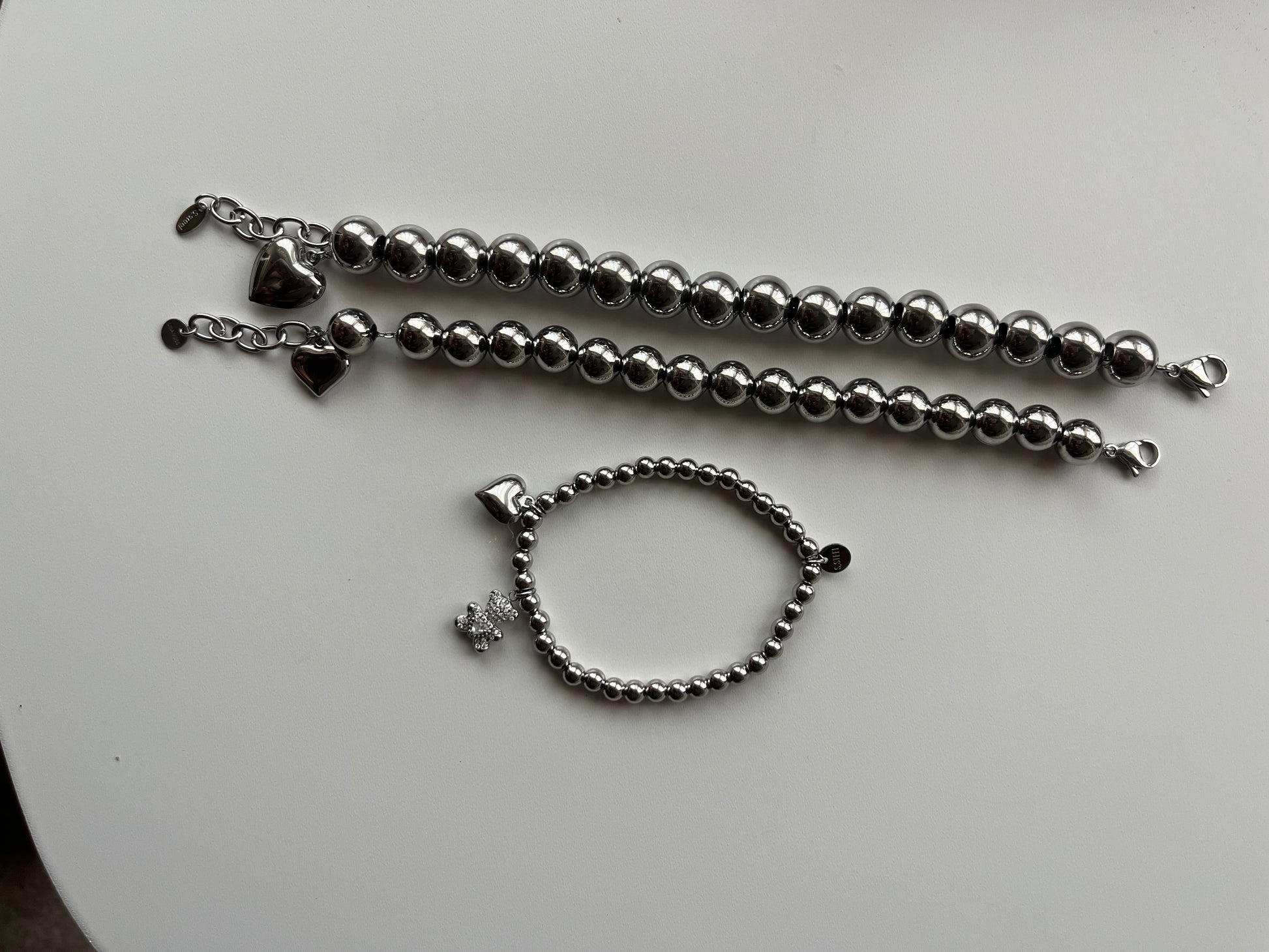 L'acciaio inossidabile è una lega di ferro, carbonio e cromo, nota per la sua elevata resistenza alla corrosione, all'umidità e all'usura. Non ossidabile e ipoallergenico, mantiene la sua lucentezza nel tempo senza annerire o arrugginire. È un materiale resistente e durevole, ideale per i gioielli di uso quotidiano.